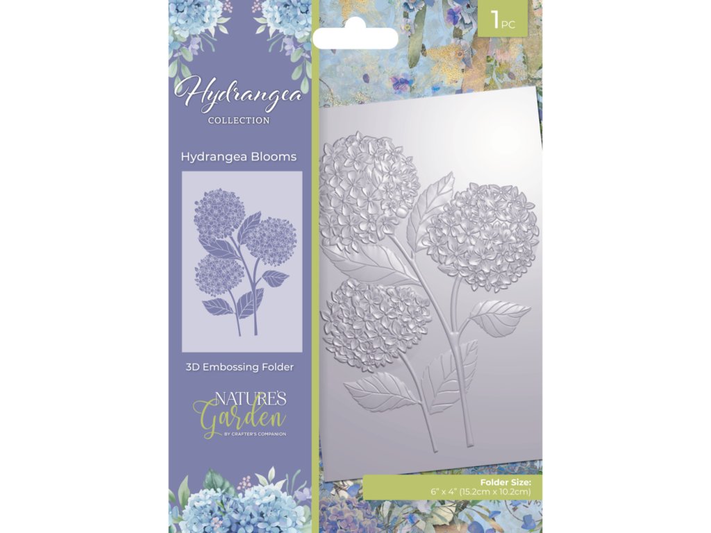 3D reliéfní složka The Nature's Garden Hydrangea - Hydrangea Blooms vytváří vyvýšený a reliéfní vzor tří složitě tvarovaných květů hortenzie, které jsou ztvárněny v dokonalých detailech.