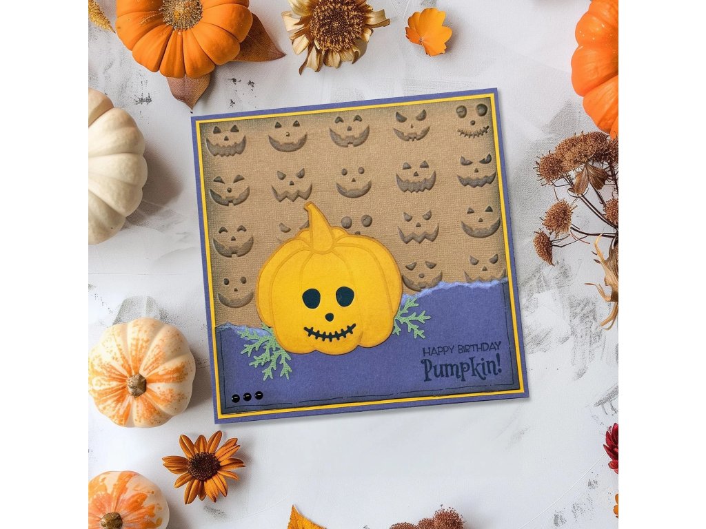 3D Embosovací kapsa Vaessen Creative Pumkin Faces Dýňové tváře 15x15 cm