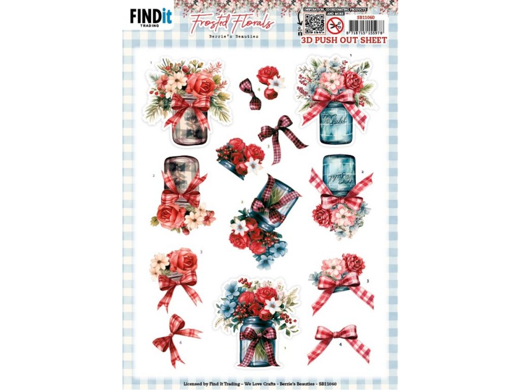 3D papírové Výřezy Berries Beauties Frosted Florals - Vase Matné květiny – váza