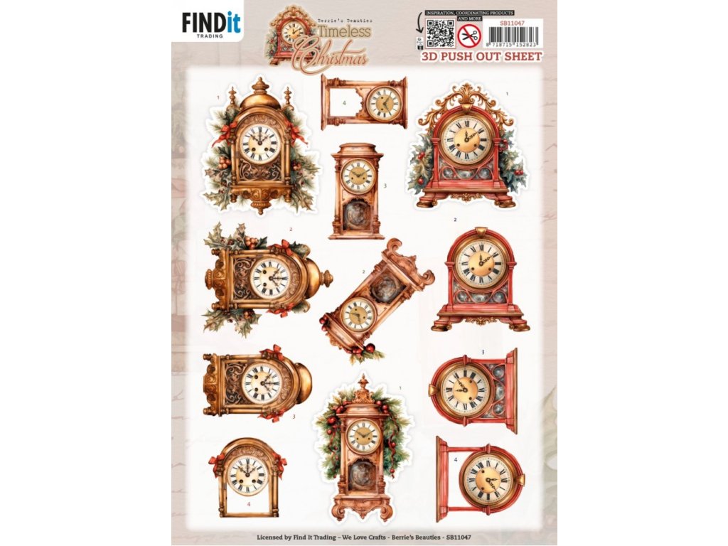 Vyřezávaný list se třemi 3D obrázky s motivem Nadčasové hodiny