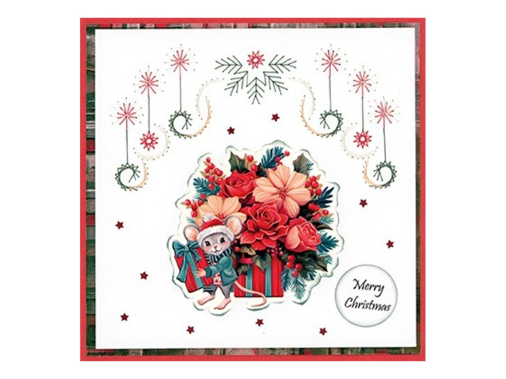 Vyřezávaný list se třemi 3D obrázky s motivem vánoční květinové kolekce od Yvonne Creations.