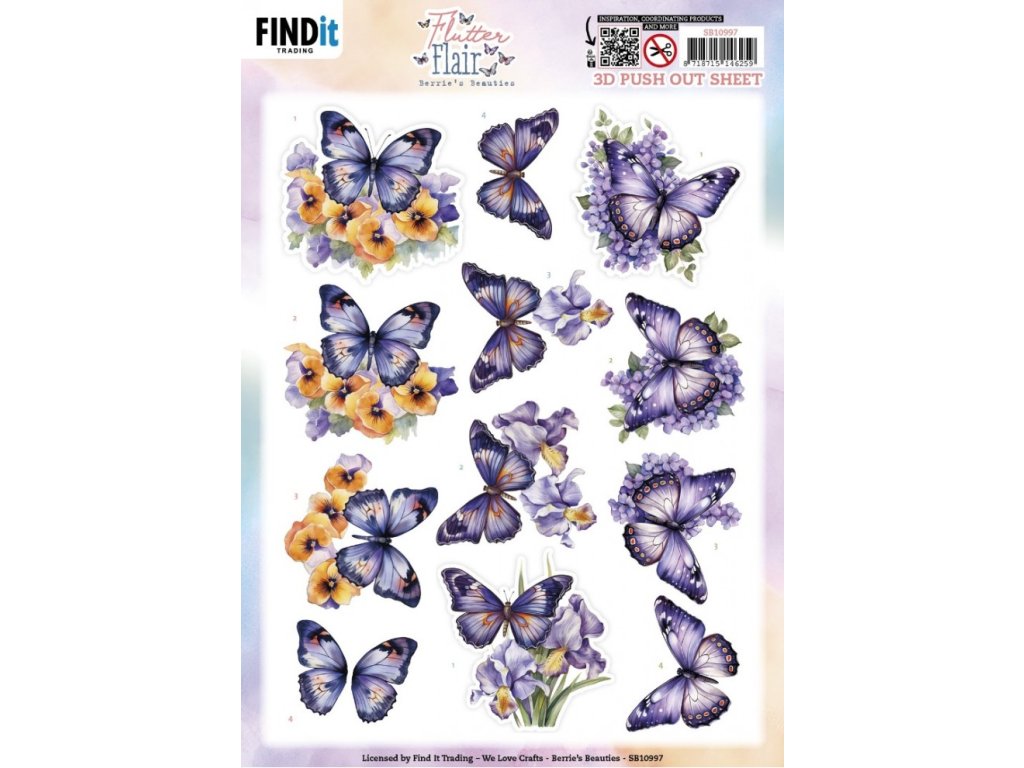 3D papírové Výřezy Flutter Flair - Fialové třepetalky
