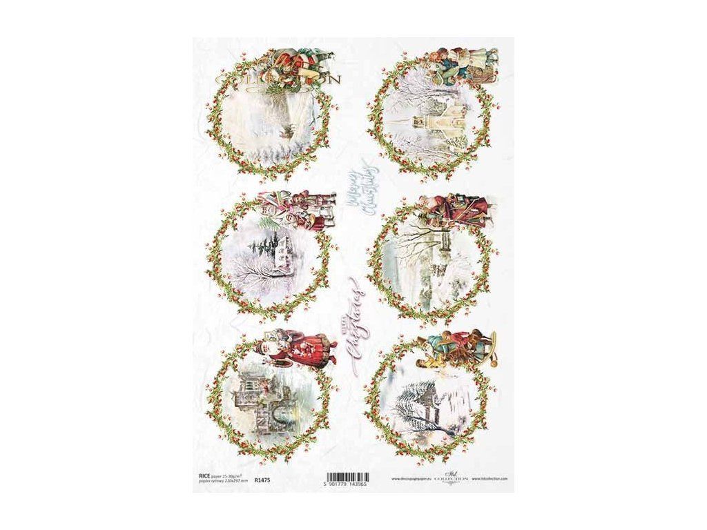 AKCE Rýžový papír ITD Collection R1475 vánoční medailonky A4 1ks