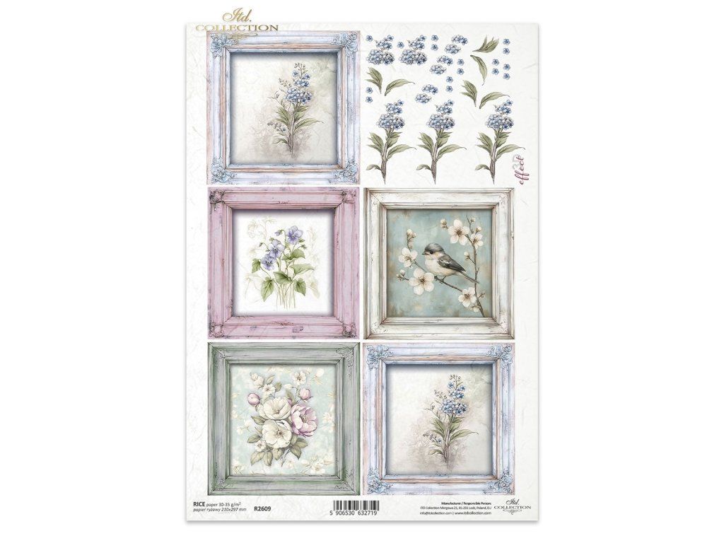 AKCE Rýžový papír ITD Collection R2609 obrázky v modrém A4 1ks