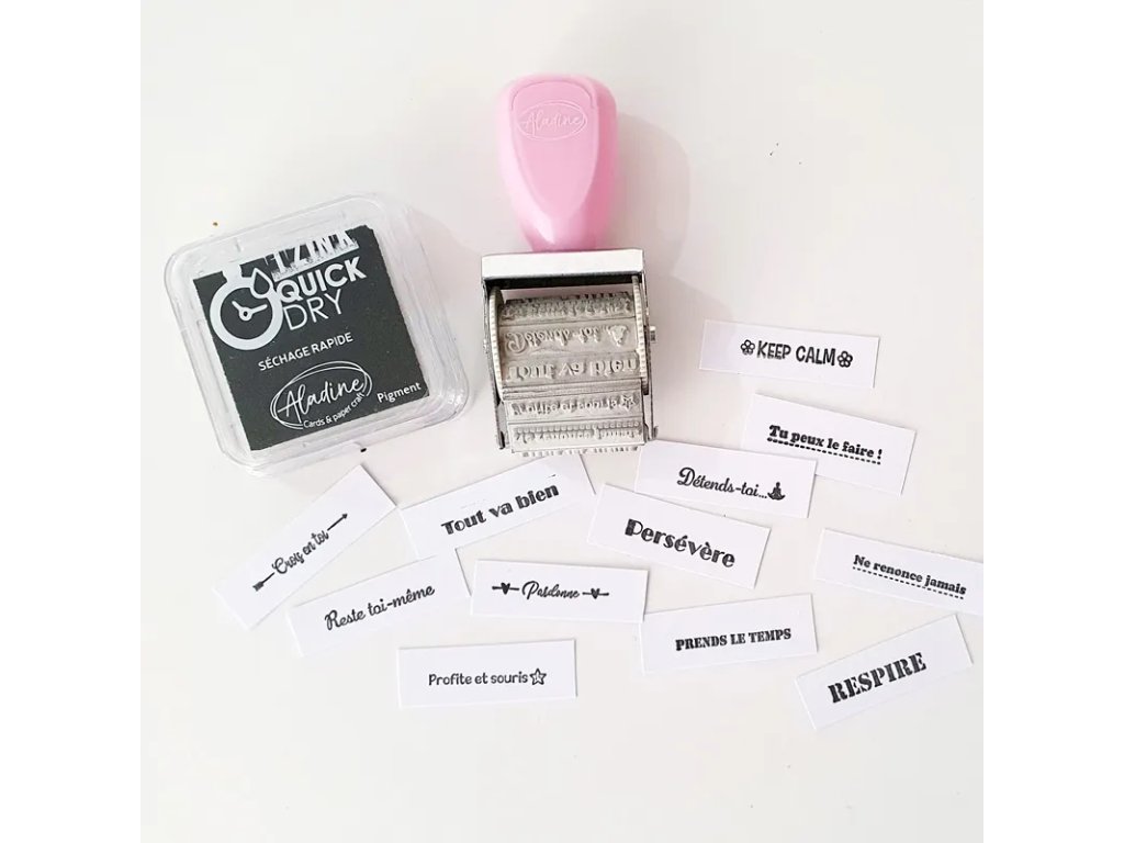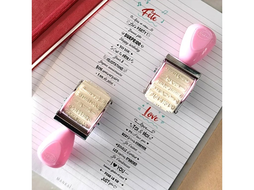 - Razítkovací štoček má hluboký reliéf, nápisy tak lze využít na papír, na látky i do hmot: keramika, samotvrdnoucí a polymerové hmoty.