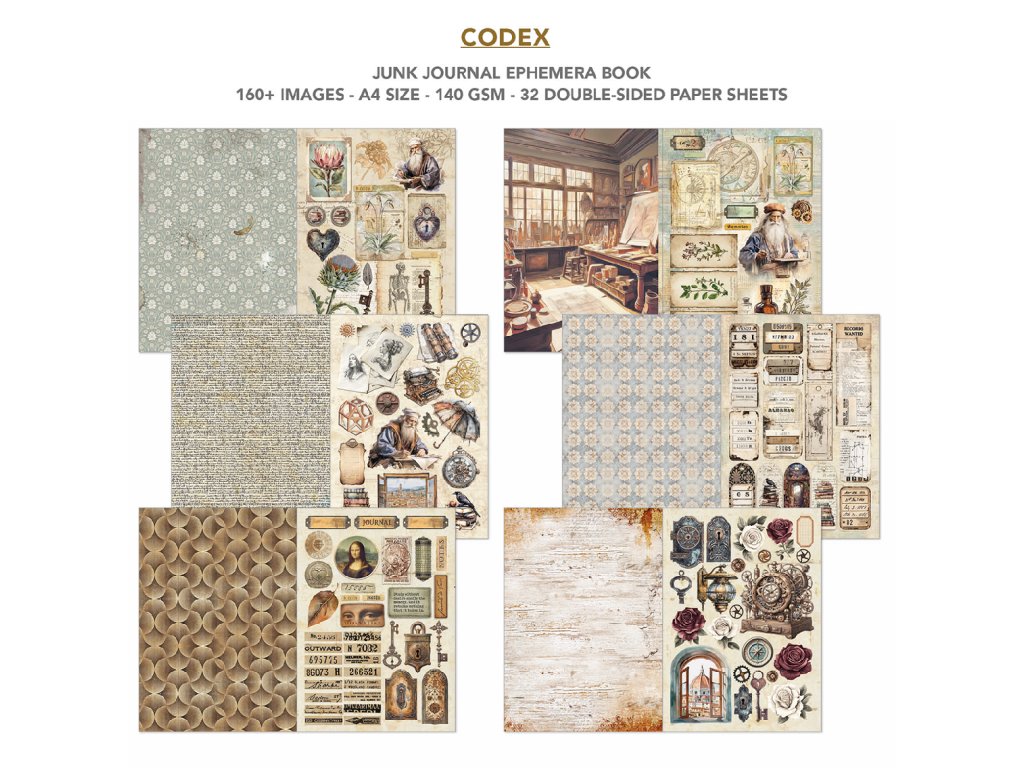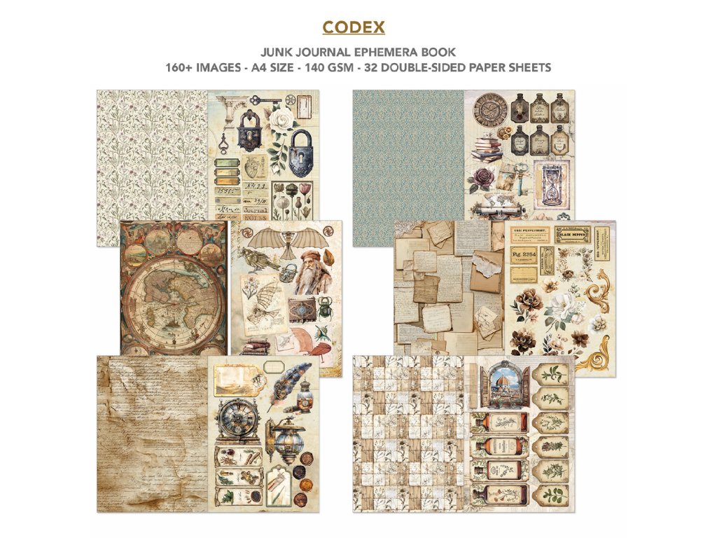Kniha efemerid Junk Journal je speciálním zdrojem efemeridových kartiček, visaček, poštovních známek, medailonků, štítků, sentimentů a dalších kreativních prvků. Každý blok nabízí více ozdob pro vaše projekty! Ideální pro junk journal, koláž, scrapbooking, výrobu přáníček a umělecké řemeslné práce z papíru!