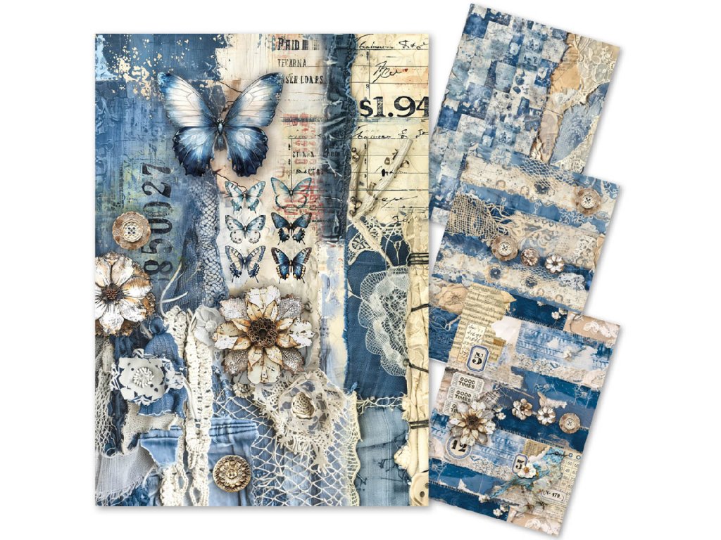 Ciao Bella Rýžový papír A4 MIXED Lumenia 4 ks Blue Denim