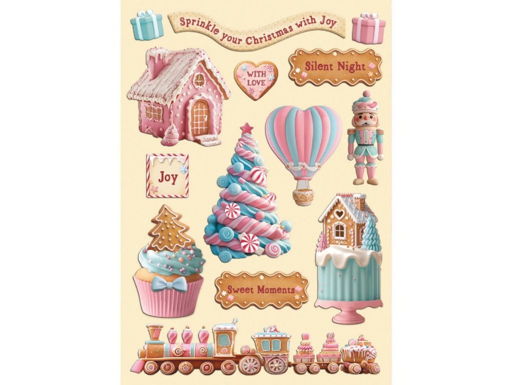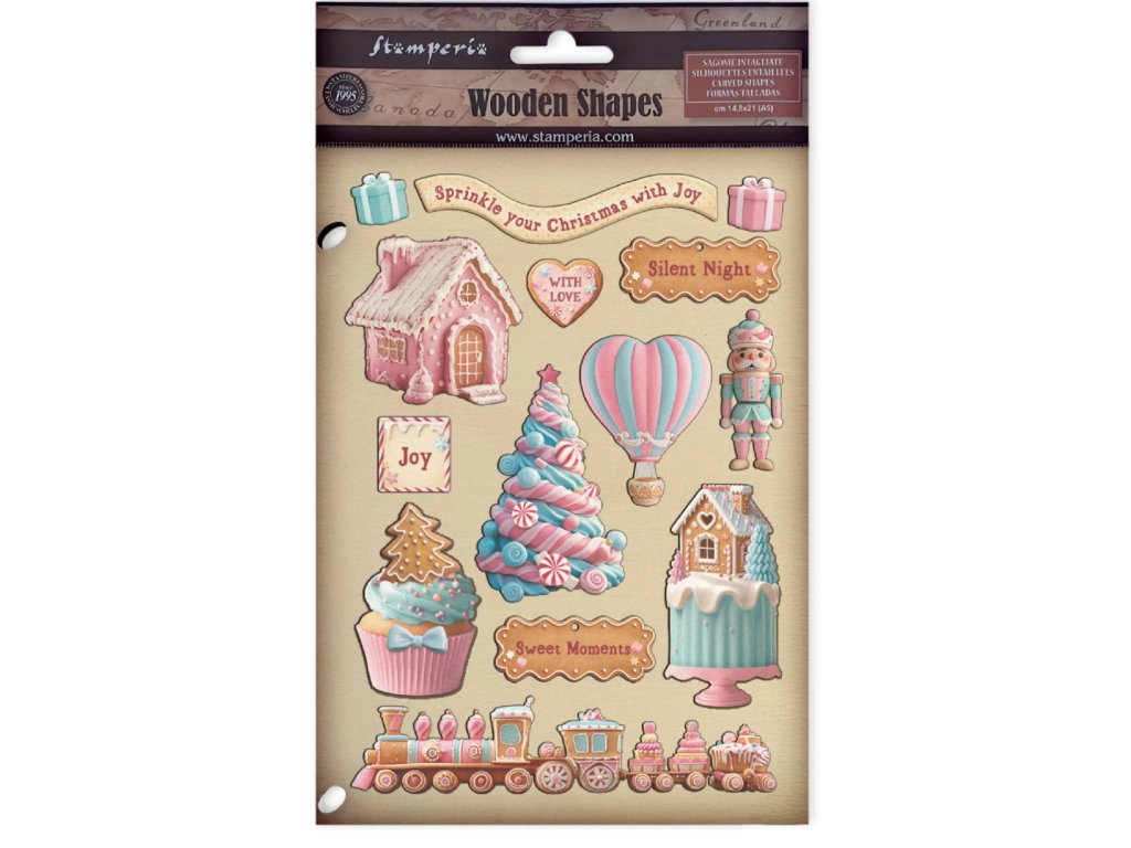 Dřevěné výřezy Stamperia A5 Candy Christmas Sladké barevné Vánoce