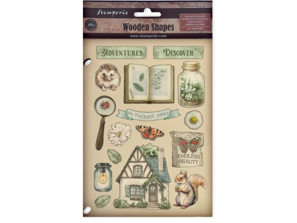 Dřevěné výřezy Stamperia Herbarium Silvae lesní herbář A5