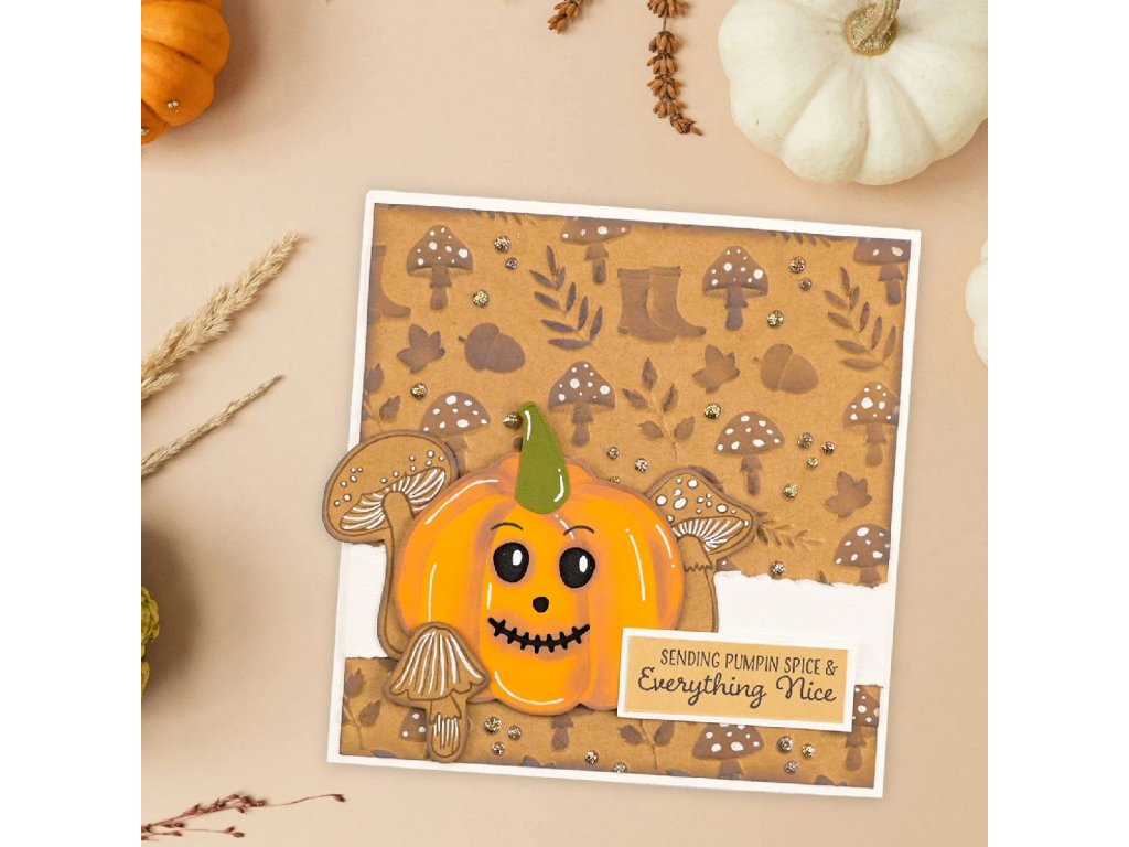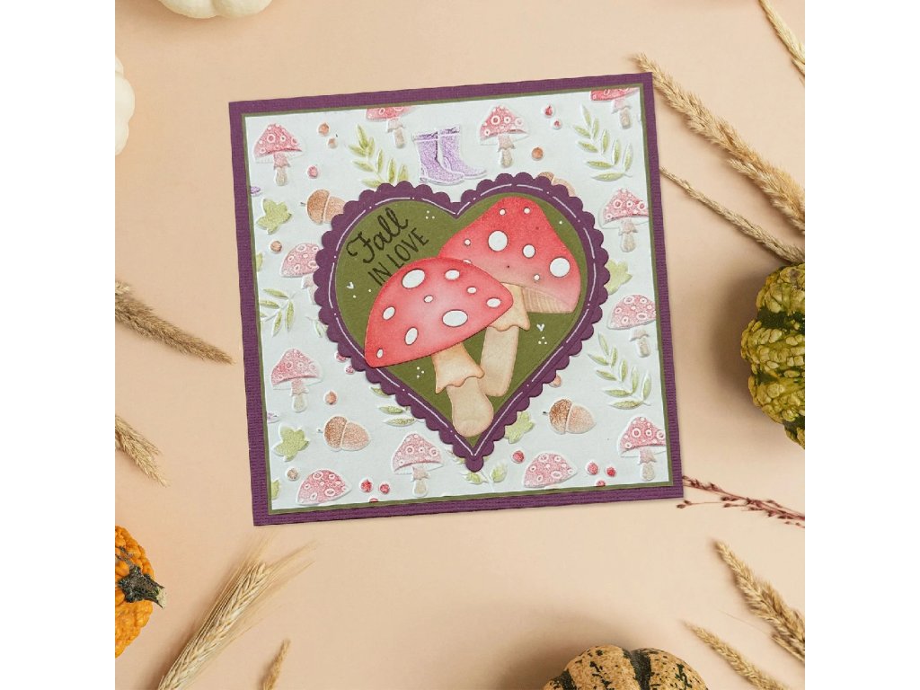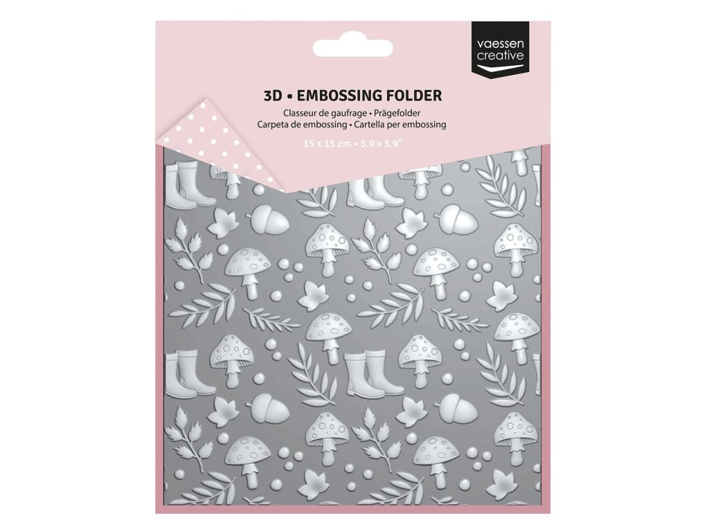 S touto embosovací složkou od Vaessen Creative můžete snadno dodat svým kartám, scrapbookům nebo stránkám deníku kreativní nádech. Tato složka je součástí kolekce Spooky Harvest Collection, speciální kolekce inspirované podzimem a Halloweenem. Díky svému designu s podzimními motivy, jako jsou houby a gumáky, a rozměrům 5,9 x 5,9 palce je tato embosovací složka ideální jako pozadí pro všechny druhy projektů.
