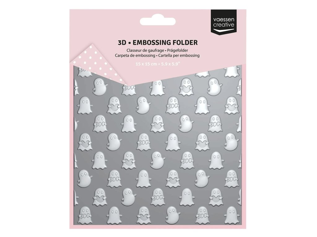S touto embosovací složkou od Vaessen Creative můžete snadno dodat svým kartám, scrapbookům nebo stránkám deníku kreativní nádech. Tato složka je součástí kolekce Spooky Harvest Collection, speciální kolekce inspirované podzimem a Halloweenem. Díky svému designu s duchy a rozměrům 5,9 x 5,9 palce je tato embosovací složka ideální jako pozadí pro všechny druhy projektů.