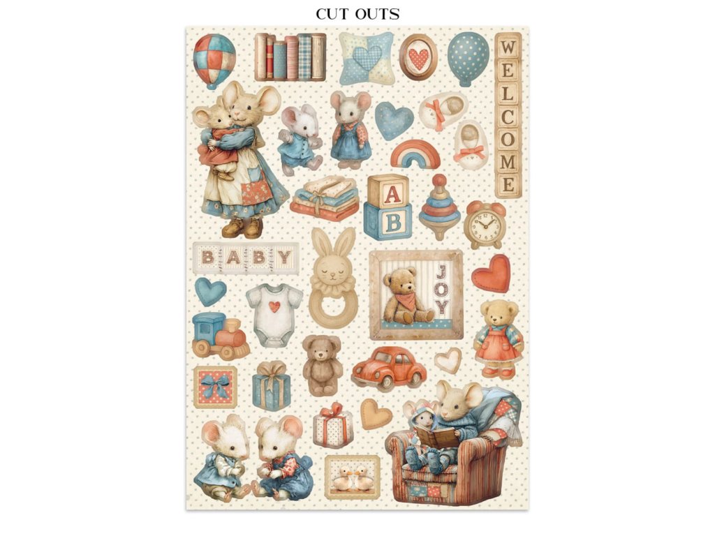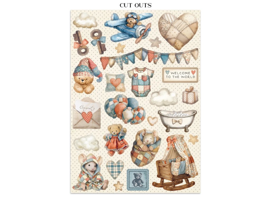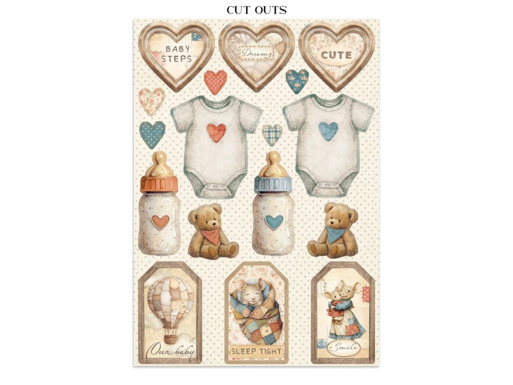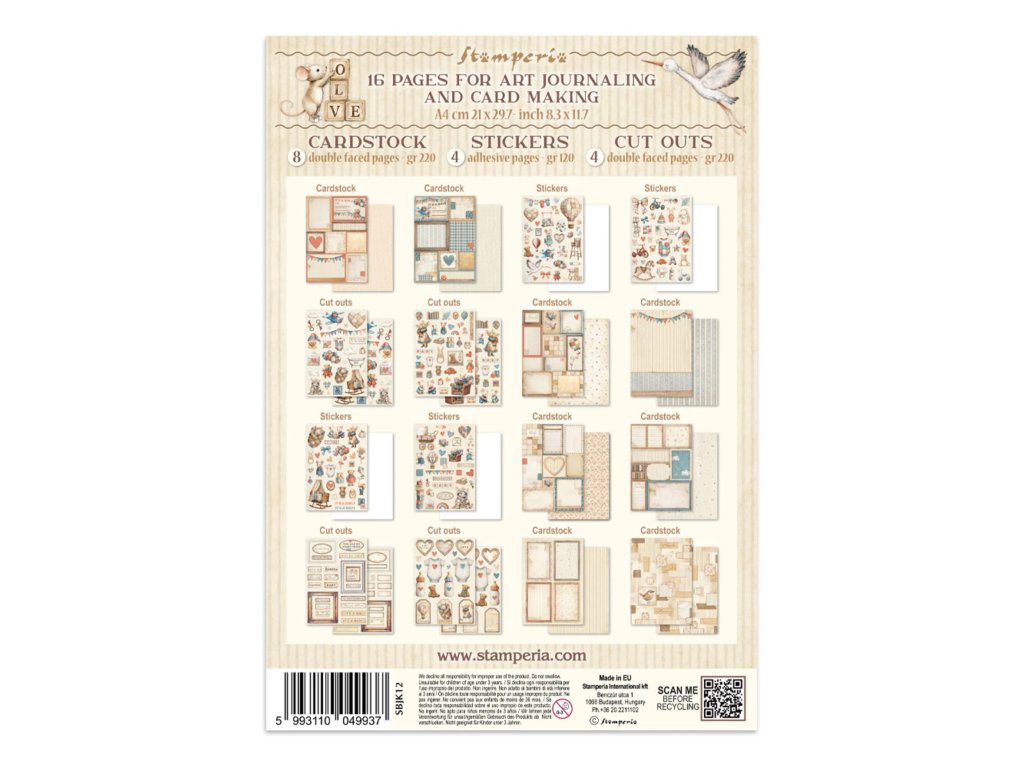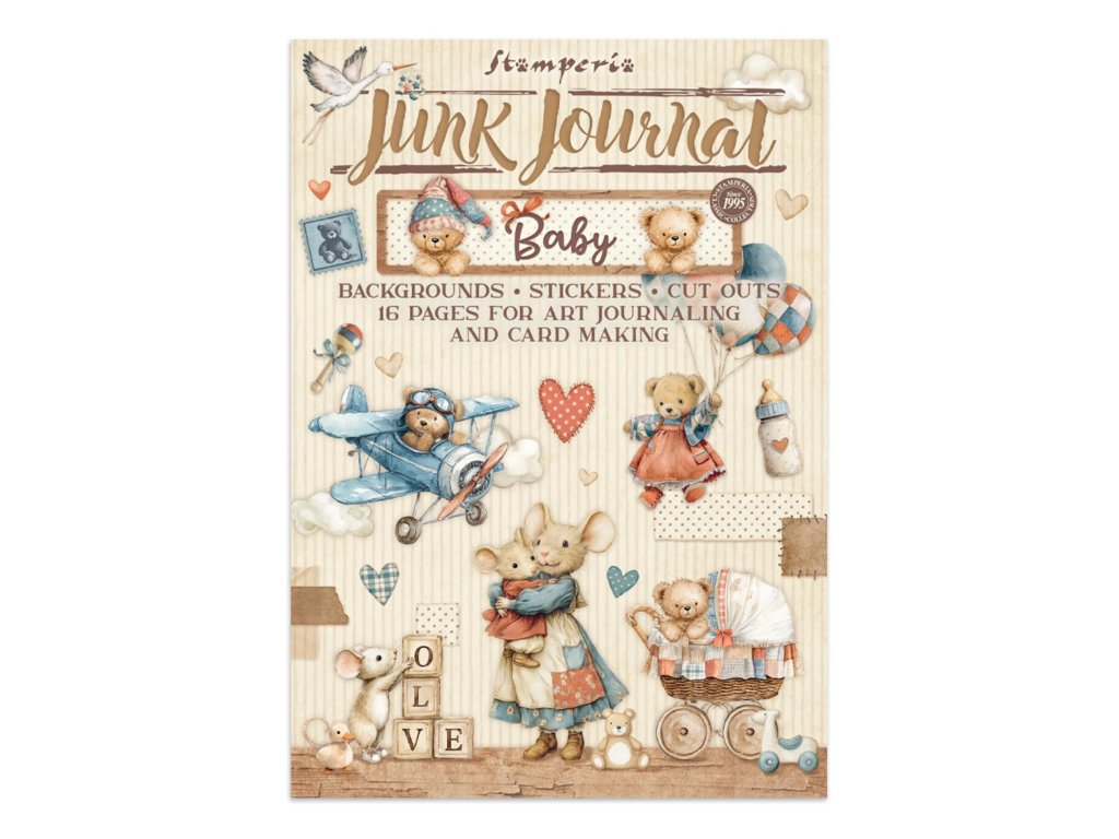 Junk Journal A4 Stamperia Baby kniha papírů,samolepek a výřezů