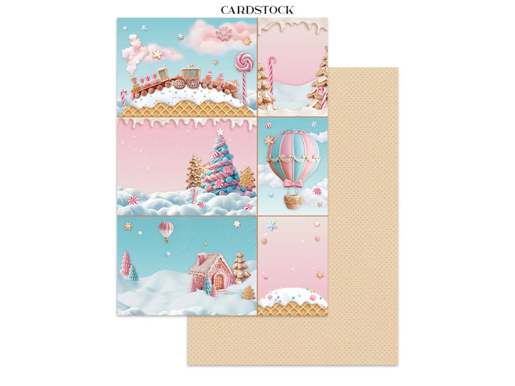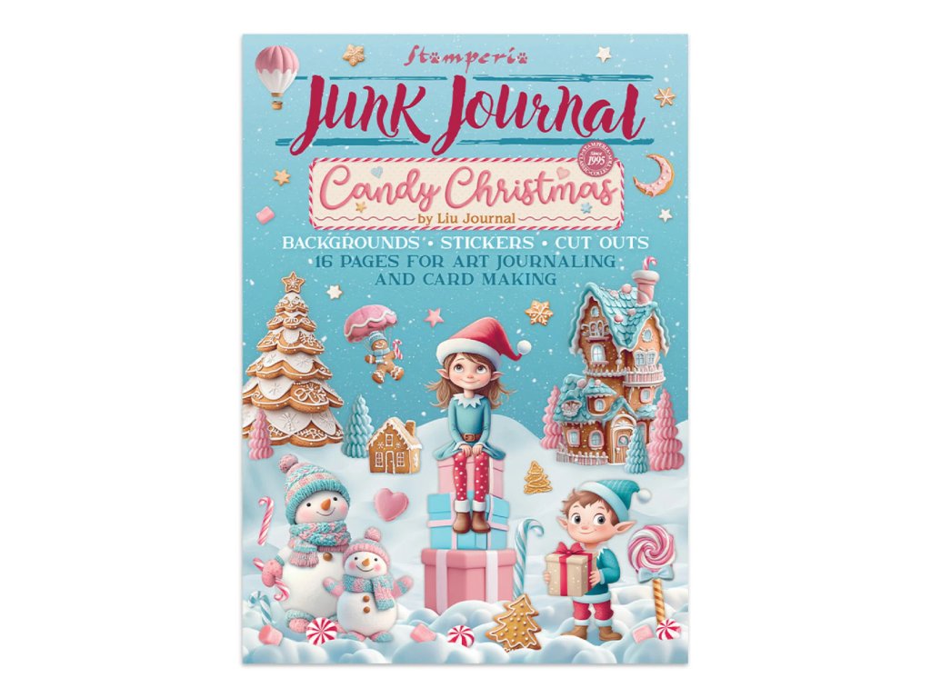 Junk Journal A4 Stamperia Candy Christmas kniha papírů, samolepek a výřezů