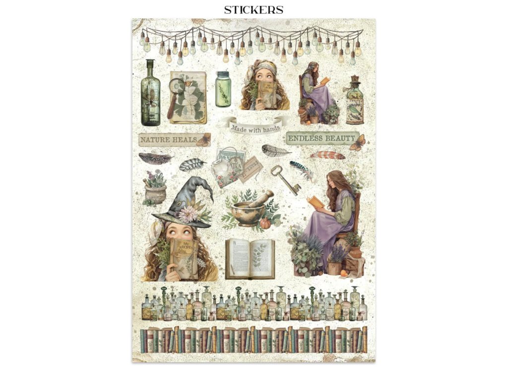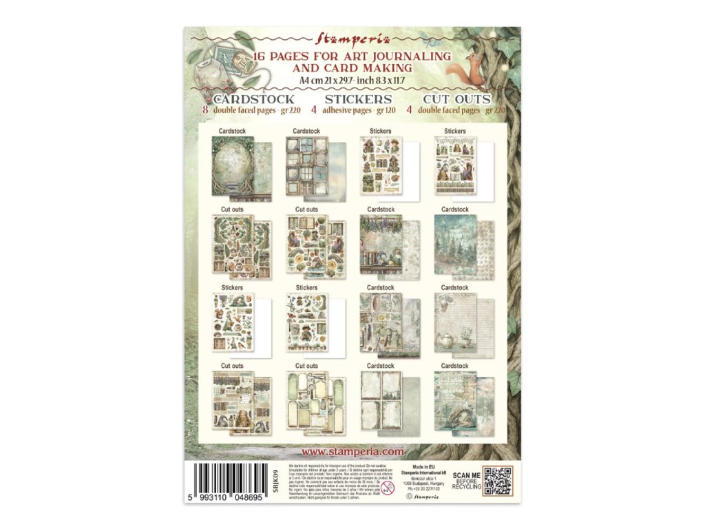 Junk Journal A4 Stamperia Herbarium Silvae lesní herbář kniha papírů,samolepek a výřezů