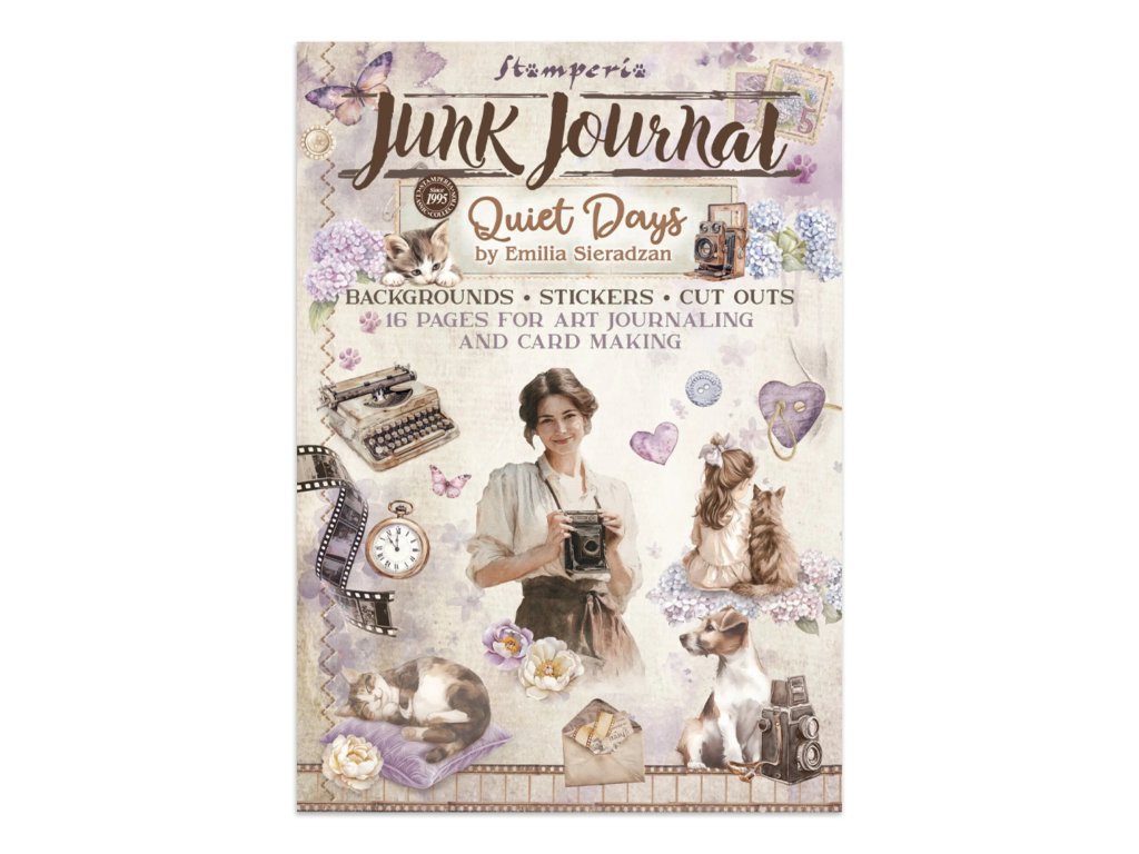 Junk Journal A4 Stamperia Quiet Days kniha papírů,samolepek a výřezů