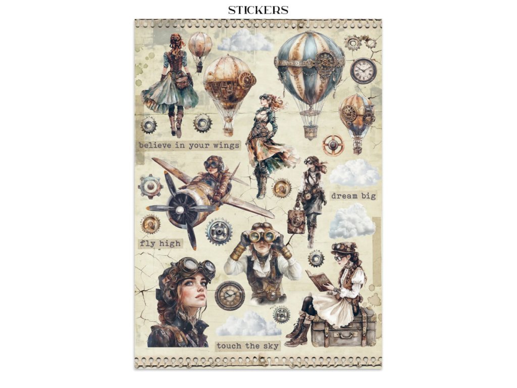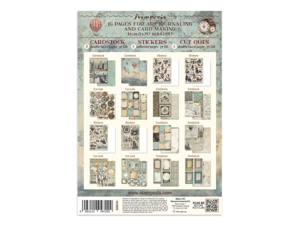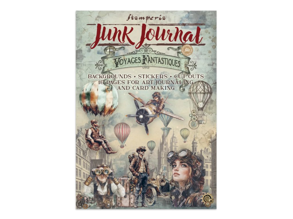 Junk Journal A4 Stamperia Voyages Fantastiques Fantastické cesty kniha pozadí, samolepky, výřezy, papíry