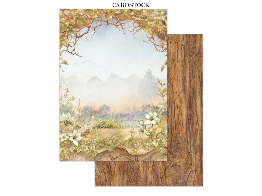 Junk Journal A4 Stamperia Whispering Wood kniha papírů, samolepek a výřezů