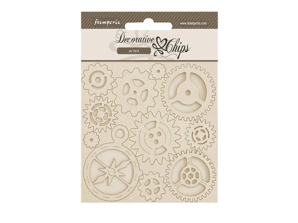 Kartonová dekorace chipboard Alterego kompas a kolečka