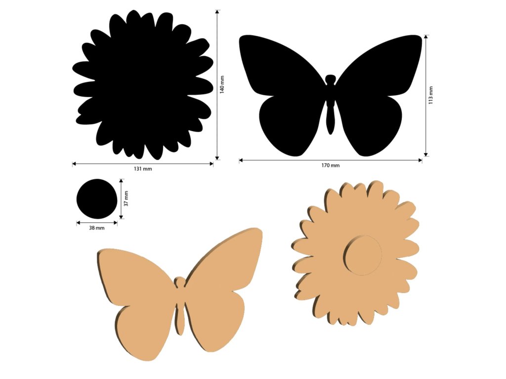 Kartonový MDF předmět Sedmikráska a motýl