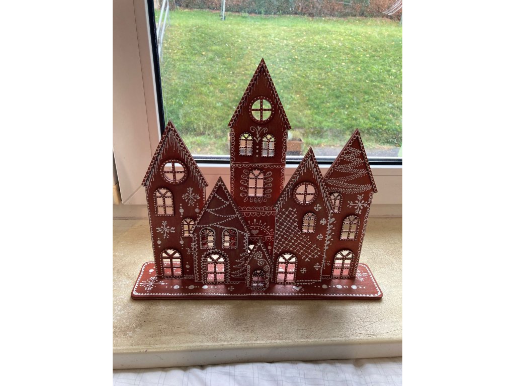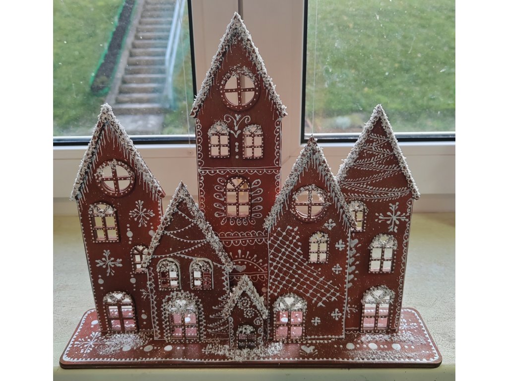 Kreativní sada: 6 dřevěných domečků,sníh a světýlko – dekorace k sestavení