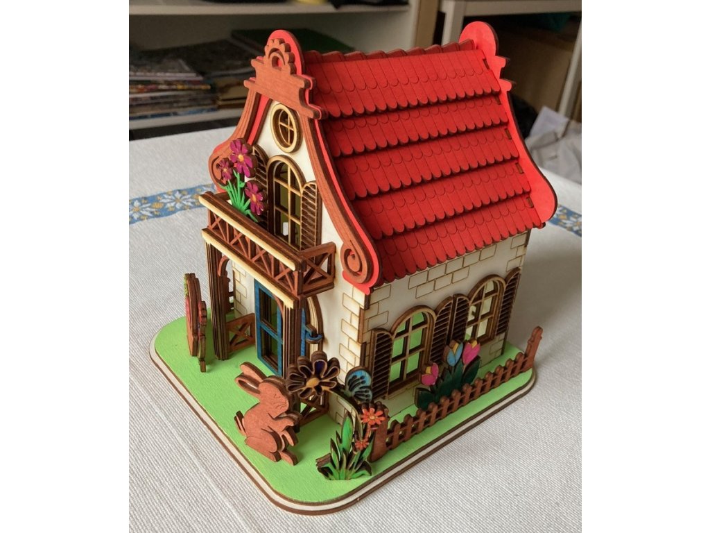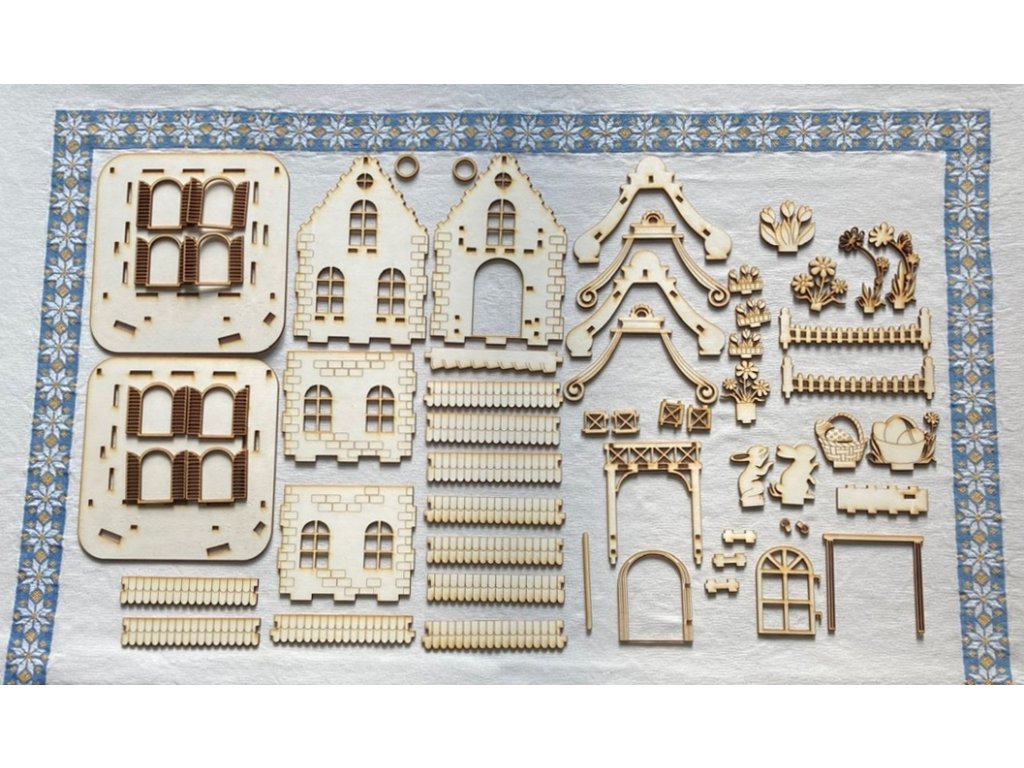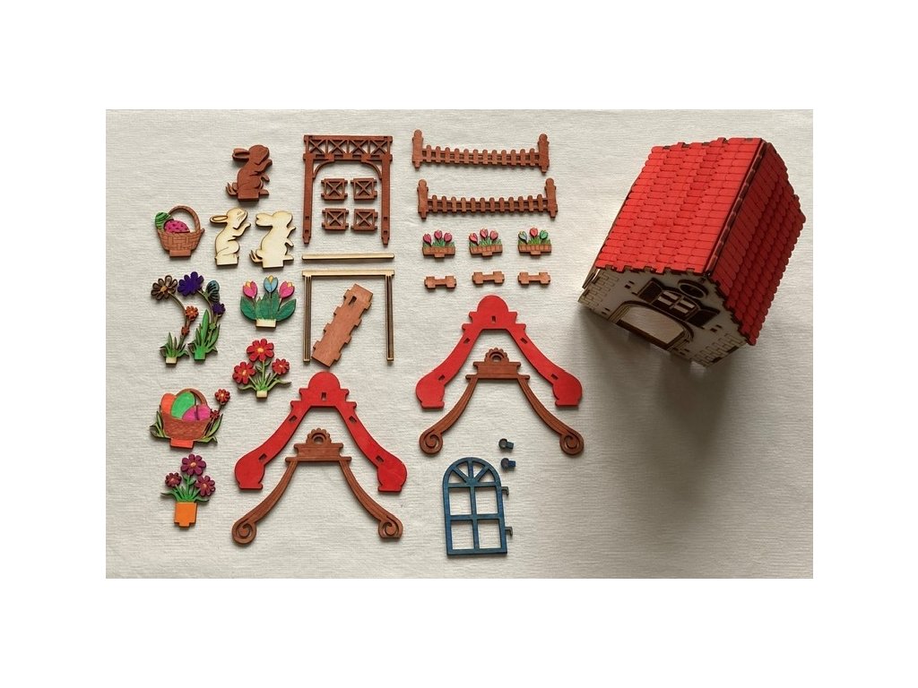 Nádherná dřevěná souprava velikonoční domeček který si sami postavíte, nabarvíte a ozdobíte.