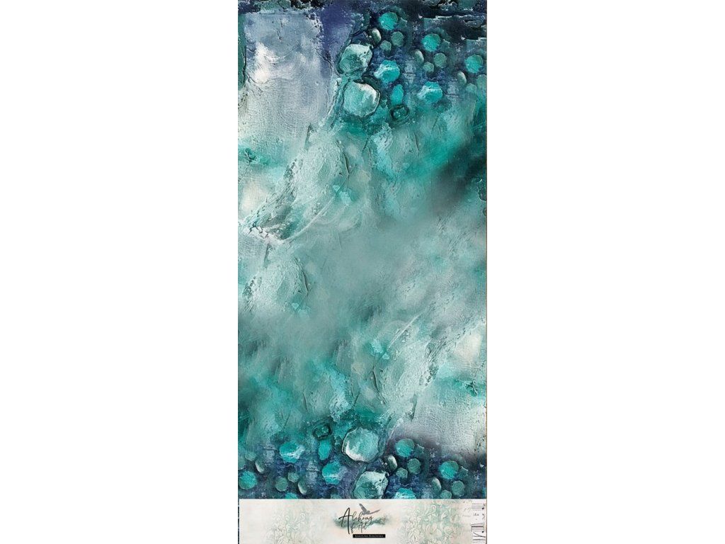 Látky na knižní a diářové vazby Alchemy of Art Ocean Blue zelenomodrý oceán 70x32 cm