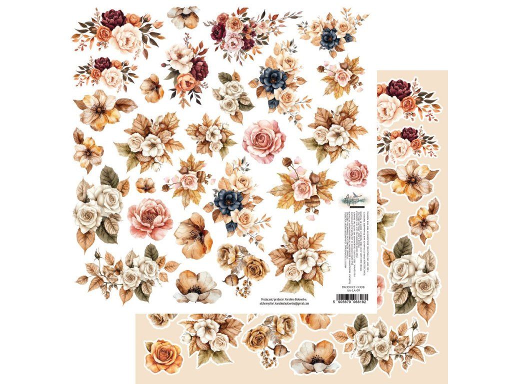 Oboustranný papír Alchemy of Art Lovely Autumn květiny 30x30cm 1 kus