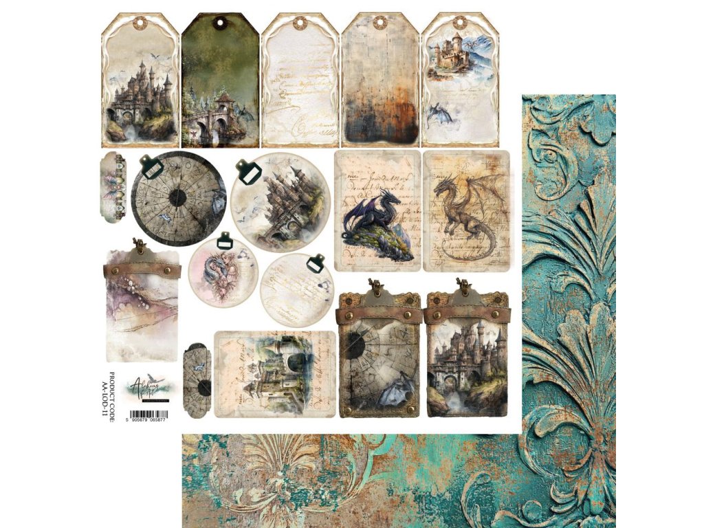 Oboustranný papír Art Alchemy The Legends Of The Dragons Dračí legendy štítky 30,5x30,5cm 1ks
