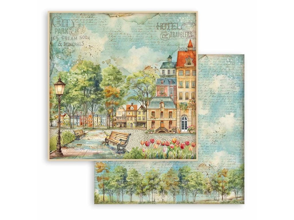 Oboustranný papír Stamperia Art of Travelling Sheets Bench 30X30cm