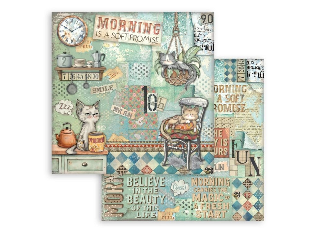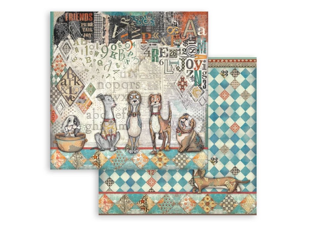 Oboustranný papír Stamperia chlupatí přátelé kočky a pejsci, domečky 30X30cm