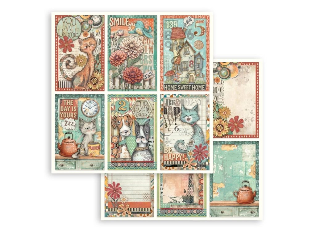 Oboustranný papír Stamperia Furry Friends chlupatí přátelé šest karet 30x30cm 1 kus