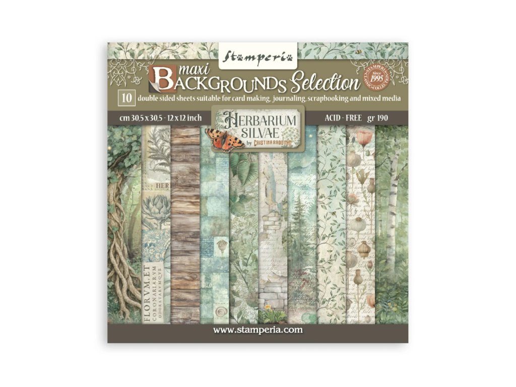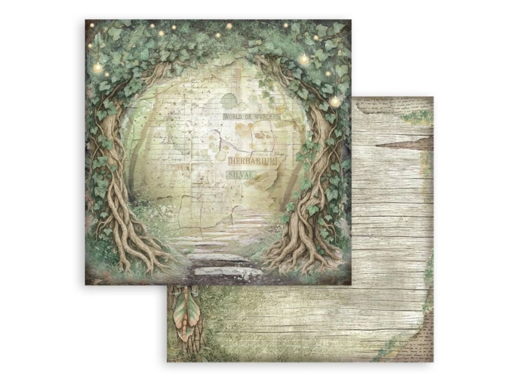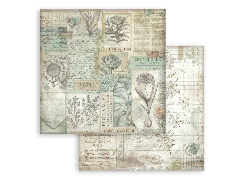 Oboustranný papír Stamperia Herbarium Silvae lesní herbář pozadí 30X30cm