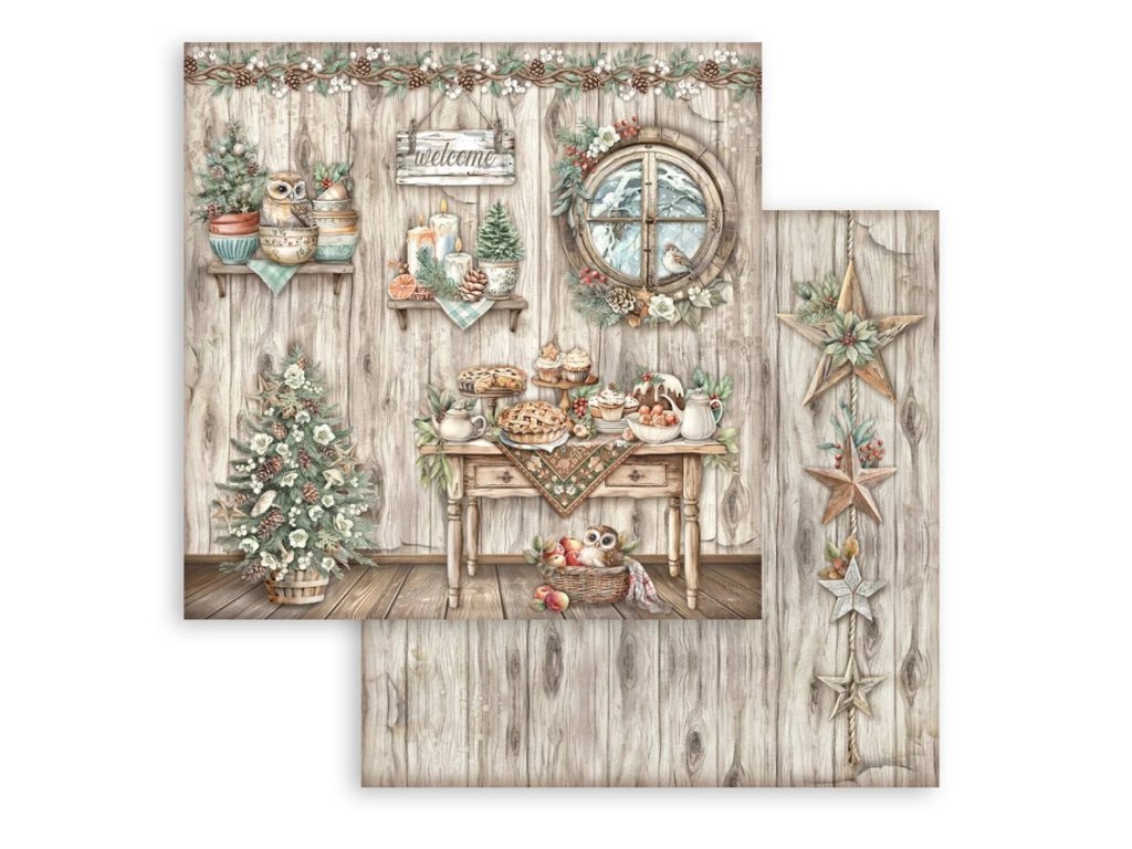 Oboustranný papír Stamperia The Owl's House vánoční stůl 30x30cm 1 kus