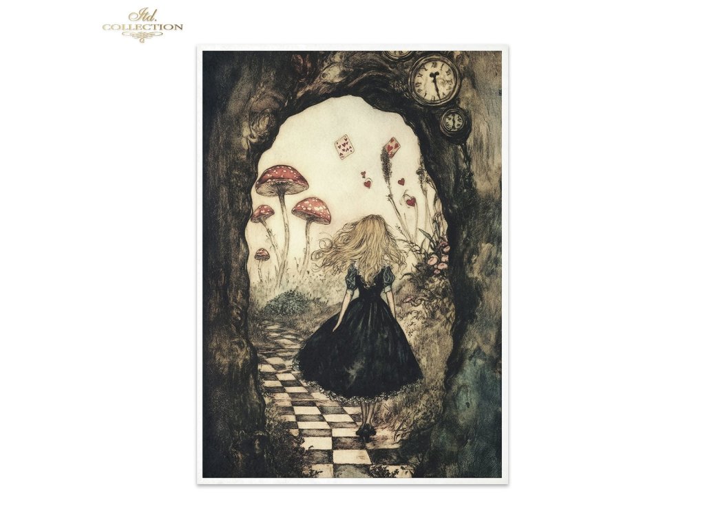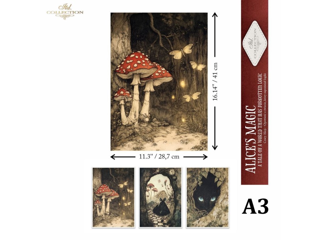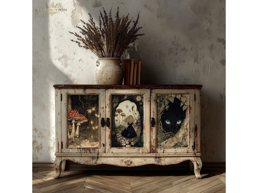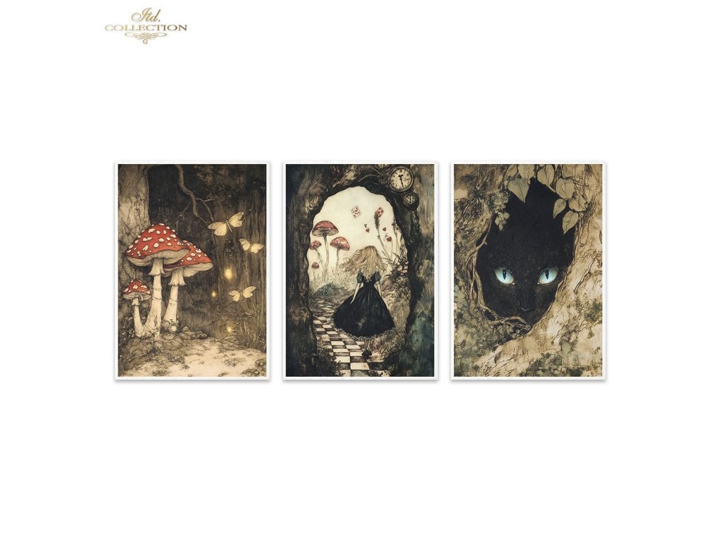 Série Alice's Magic - Alenka, karty, šachy, houby, muchomůrky, kočka, kočičí oči, temný les, střešní okna, pohádkové kompozice.