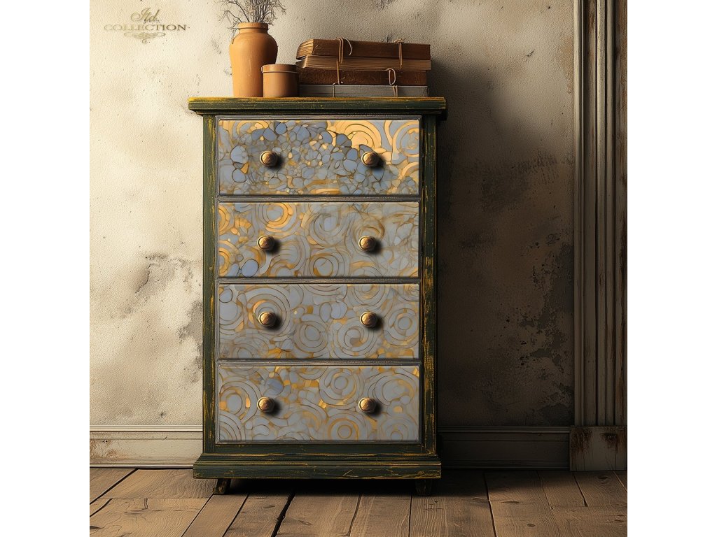 Použití - Nábytek: skříňky, zásuvky, šatní skříně, desky stolů, rámy; Bytové doplňky: stěnové panely, dveře, doplňky; Plátna, panely, kombinované techniky, kutilství; Ideální pro decoupage, scrapbooking, umělecké deníky