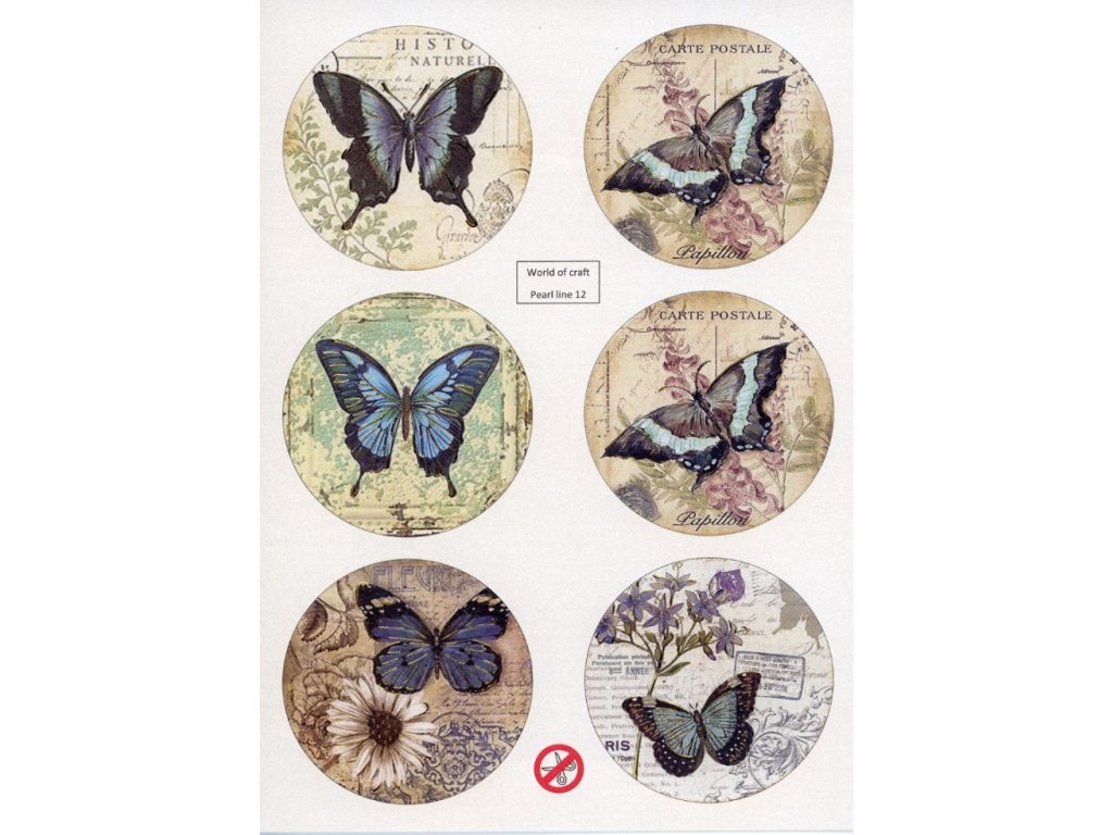 Papír předstřižený perleťový s obrázky A4 Motýlci v kruhu č.12