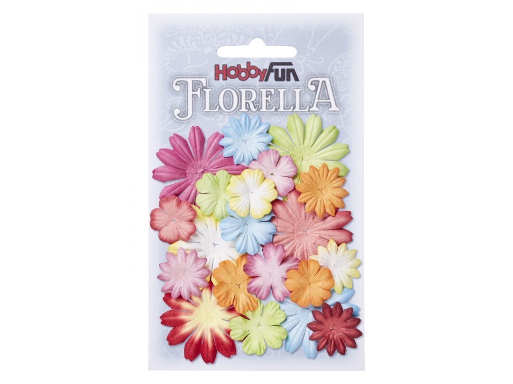 Papírové květiny FLORELLA Květiny z morušového papíru mix I cca 20 ks 2–4 cm