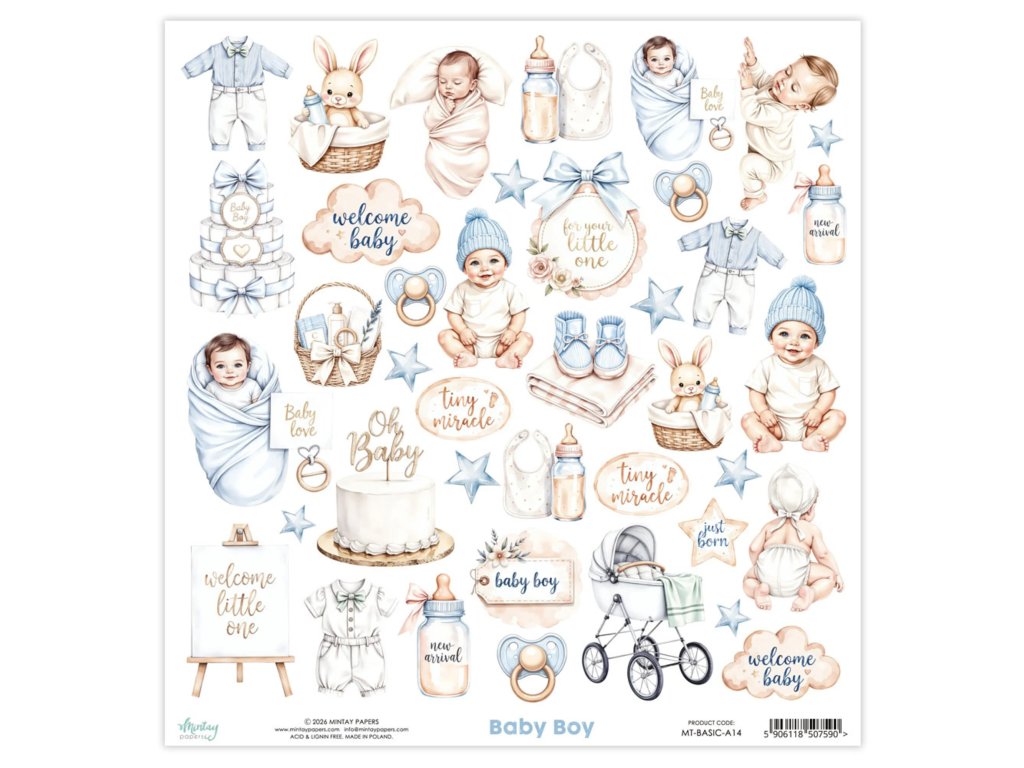 Papírové prvky Mintay Basic Baby Boy Chlapeček 30x30 cm