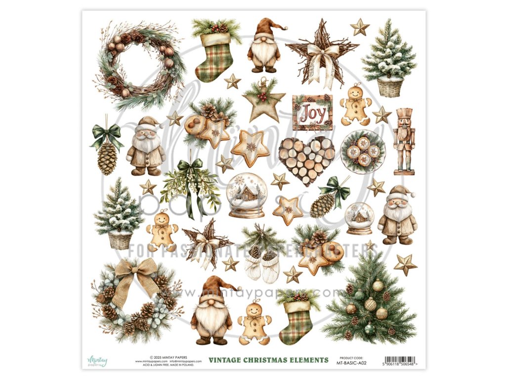 Papírové prvky Mintay Basic Rustic Christmas papír 30x30 cm