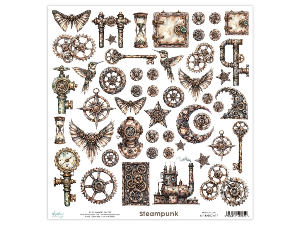 Papírové prvky Mintay Basic Steampunk 30x30 cm