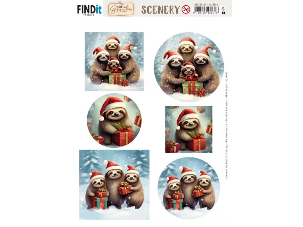 Papírové výřezy Berries Beauties Christmas Sloth vánoční lenochod