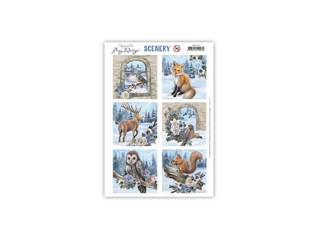 Papírové Výřezy Lesní zvířátka v Zimě ve čtverci