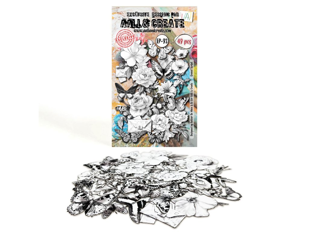 Papírové výřezy Pollen Drift A6 Ephemera–písmo Gravel Script