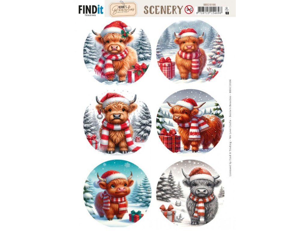 Papírové výřezy předstřižené Berries Beauties Festive Cows vánoční kravičky v kruhu