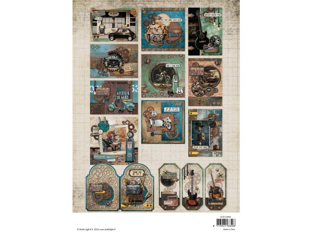 Papírové výřezy předstřižené Studio light Gearhead Workshop retro autodílna A4