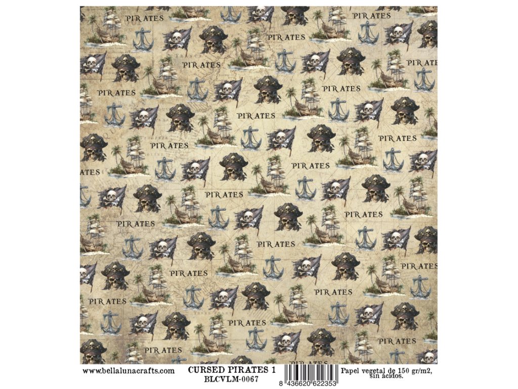 Pergamenový papír BellaLuna CURSED PIRATES prokletí piráti lebky 30x30cm 1ks