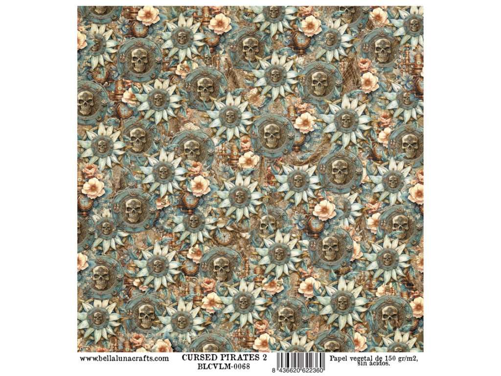 Pergamenový papír BellaLuna CURSED PIRATES prokletí piráti medailony s lebkou 30x30cm 1ks