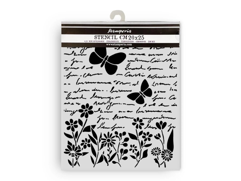 Plastová šablona Stamperia 20x25 Dopis a motýl