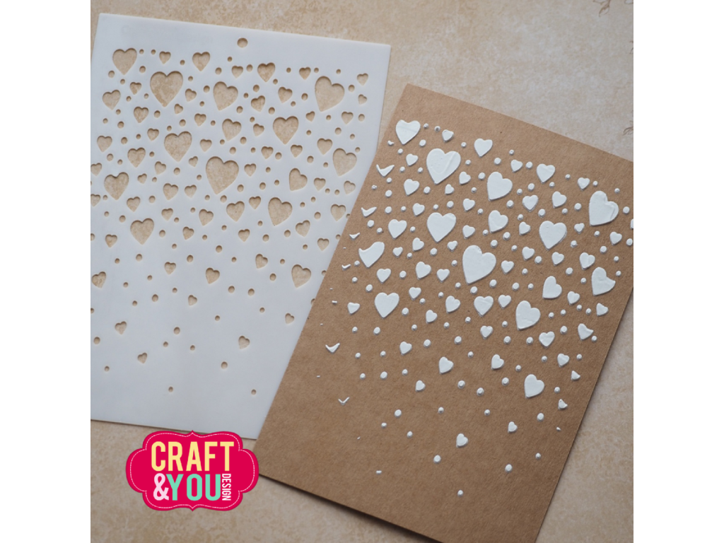 Plastová šablona Craft & You Design Floating Hearts Planoucí srdce A6