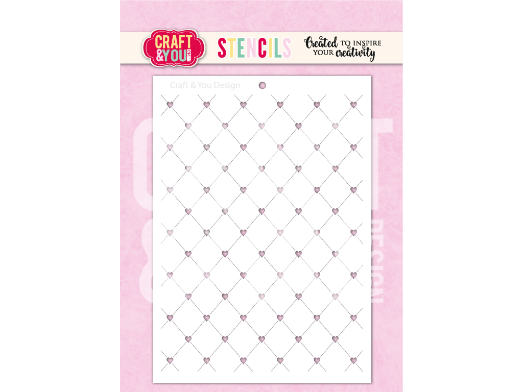 Plastová šablona Craft & You Design Heart Grid srdcová mřížka A6